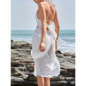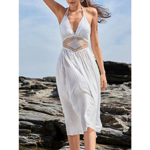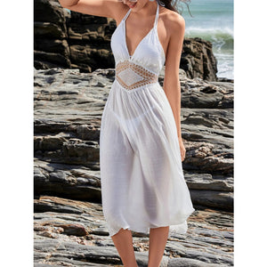 Crochet Waist Halter Sleeveless Cover-Up Dress