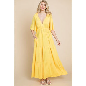 Culture Code Backless Plunge Half Sleeve Tiered Dress