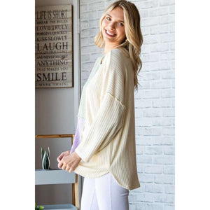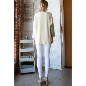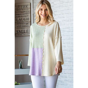 Culture Code Color Block Round Neck Dropped Shoulder Blouse
