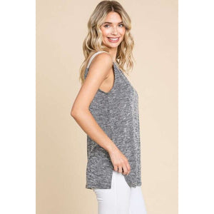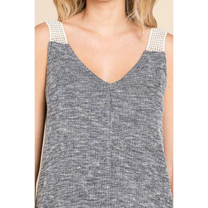 Culture Code Contrast Eyelet Strap Slit Ribbed Tank