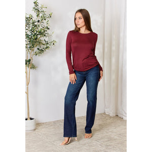 Culture Code Full Size Drawstring Round Neck Long Sleeve Top