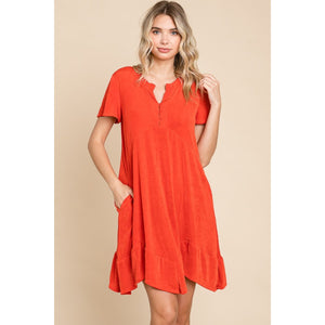 The Notched Short Sleeve Dress is a versatile and chic option for a variety of occasions. The notched neckline adds a modern and interesting detail to this classic silhouette, making it stand out from the crowd. The short sleeves offer comfort and ease of movement, while the flattering fit accentuates the figure in all the right places. Whether dressed up with heels and accessories for a special event or paired with sandals for a casual day out, this dress is sure to become a wardrobe staple for its effortless style and versatility.