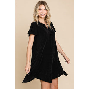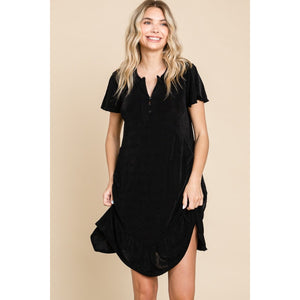 The Notched Short Sleeve Dress is a versatile and chic option for a variety of occasions. The notched neckline adds a modern and interesting detail to this classic silhouette, making it stand out from the crowd. The short sleeves offer comfort and ease of movement, while the flattering fit accentuates the figure in all the right places. Whether dressed up with heels and accessories for a special event or paired with sandals for a casual day out, this dress is sure to become a wardrobe staple for its effortless style and versatility.