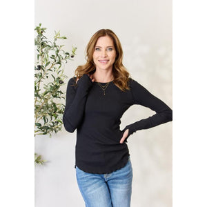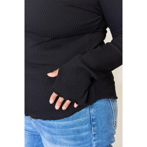 Culture Code Full Size Ribbed Round Neck Long Sleeve Top