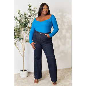 Culture Code Full Size Ribbed Sweetheart Neck Knit Top