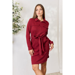 This Shirt dress offers a stylish twist on the classic shirt dress. With its half zip detailing and tie front design, this dress achieves the perfect balance between casual and fashionable, making it a must-have for any wardrobe. The long sleeves add a touch of sophistication, making it perfect for transitioning between seasons.