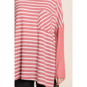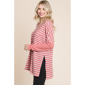 Culture Code Oversize Striped Round Neck Long Sleeve Slit T-Shirt
