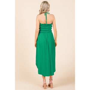 This Tie Back Shirring Dress with Pockets combines style and functionality for a versatile wardrobe staple. Featuring shirring on the bodice, this dress offers a flattering and comfortable silhouette. The addition of pockets provides convenience and practicality, perfect for carrying small essentials. Whether dressed up with heels or styled casually with sandals, this dress is perfect for various occasions. Elevate your look with this effortlessly chic and on-trend dress that seamlessly blends fashion and comfort.