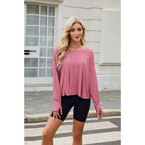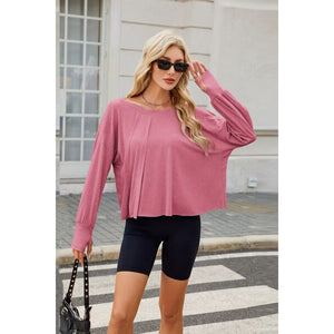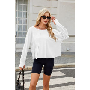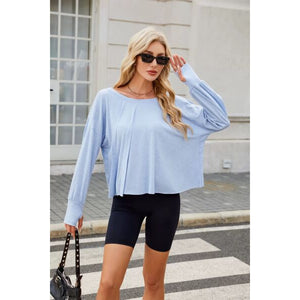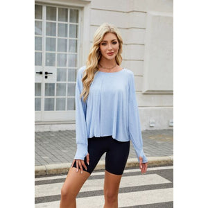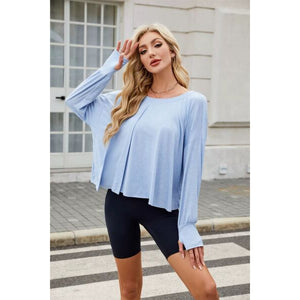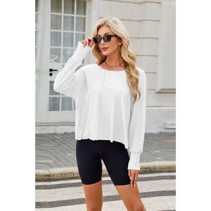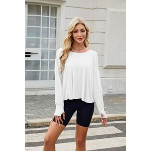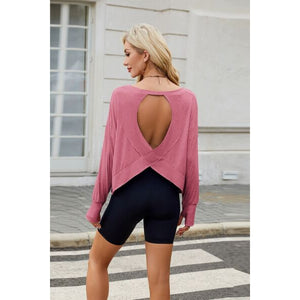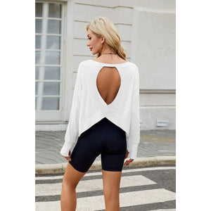 Cutout Back Round Neck Long Sleeve T-Shirt