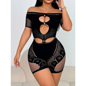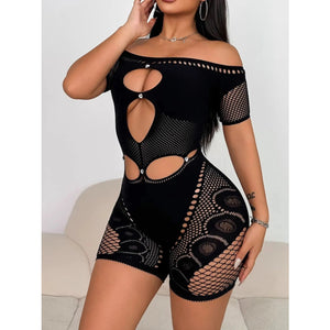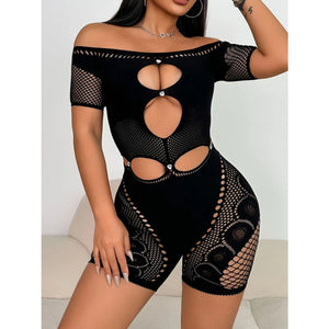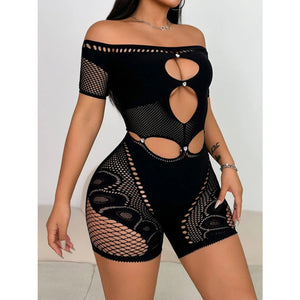 Cutout Off Shoulder Fishing Net Romper