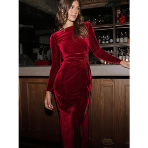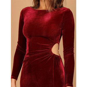 Cutout Side Slit Boat Neck Long Sleeve Dress