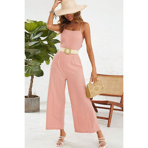 Cutout Spaghetti Strap Tie Back Wide Leg Jumpsuit