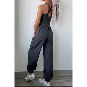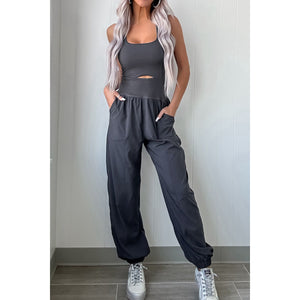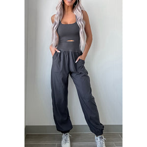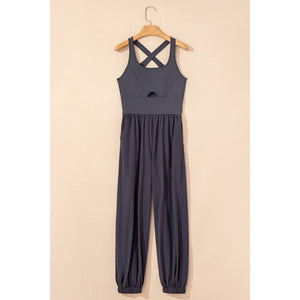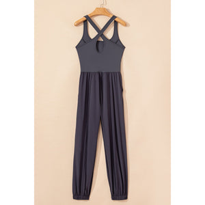 Cutout Square Neck Wide Strap Active Jumpsuit