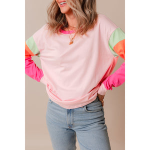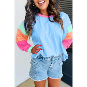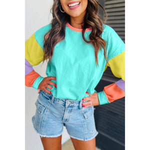 Dark Blue Colorblock Patchwork Long Sleeve Loose Top
