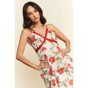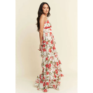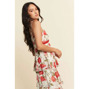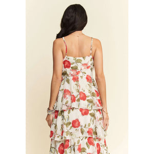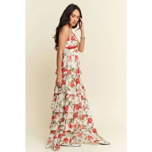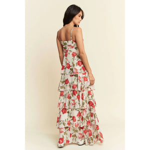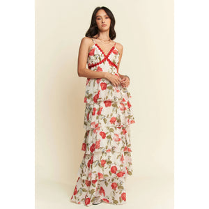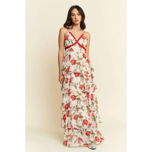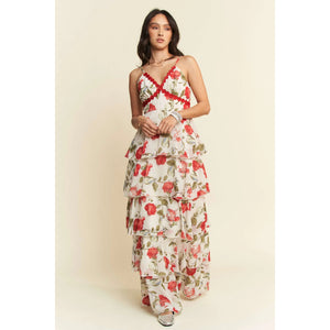 Davi & Dani Contrast Ring Lace Layered Ruffle Maxi Cami Dress