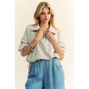 Davi & Dani Drawstring Hem Half Zip Raglan Sleeve Sweatshirt