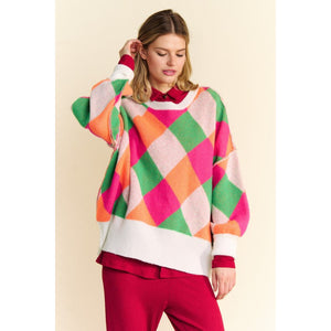 Davi & Dani Exposed Seam Color Block Dropped Shoulder Sweater