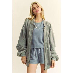 Davi & Dani Exposed Seam Zip Up Dropped Shoulder Jacket