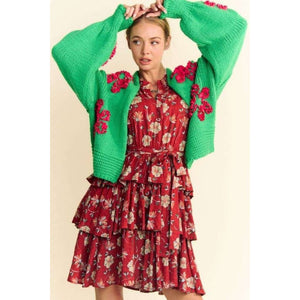 Davi & Dani Floral Applique Open Front Drop Shoulder Cardigan