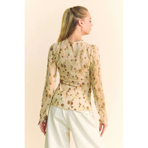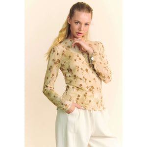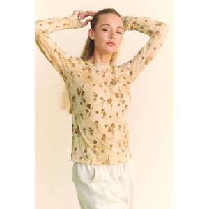 Davi & Dani Floral Mesh Long Sleeve Sheer Layering Top