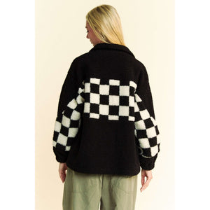 Davi & Dani Full Size Checkered Snap Down Faux Fur Jacket