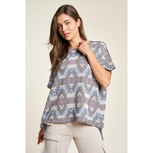 Davi & Dani High-Low Geometric Round Neck Knit Top