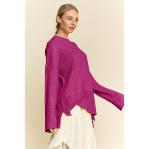 Davi & Dani High-Low Round Neck Drop Shoulder Sweater