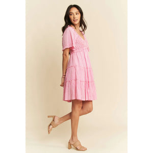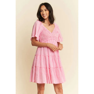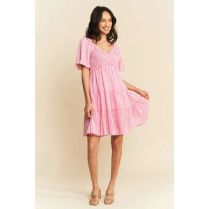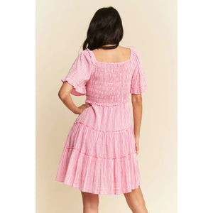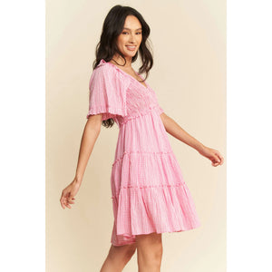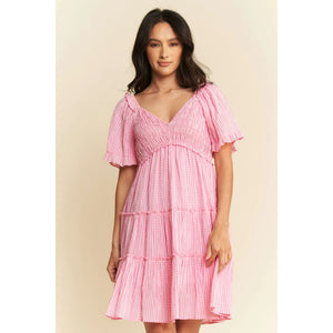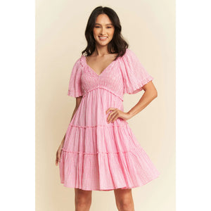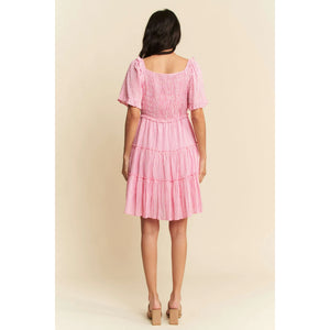 Davi & Dani Jacquard Checker Smocking Tiered Dress