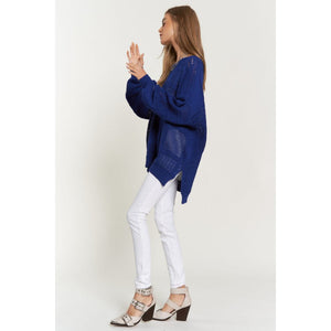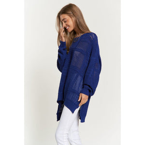 Davi & Dani Openwork Side Slit Drop Shoulder Knit Cover Up