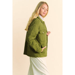 Davi & Dani Quilted Button Down Shacket with Chest Pockets