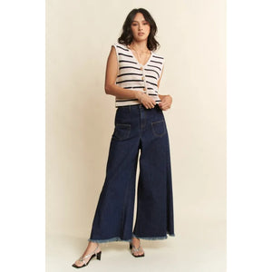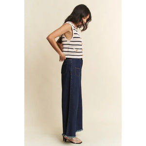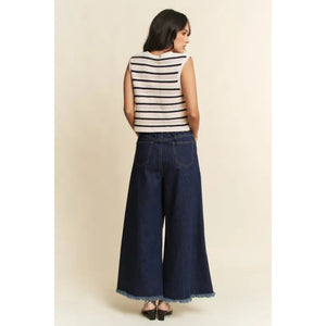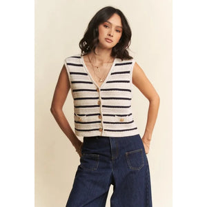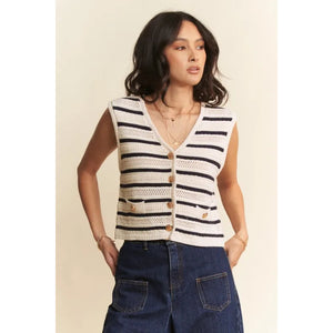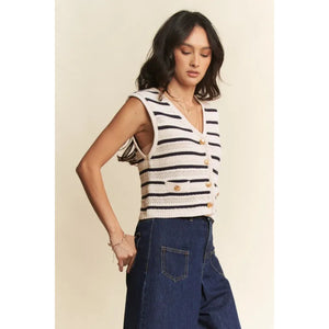Davi & Dani Sleeveless Cropped Striped Sweater Knit Vest Top