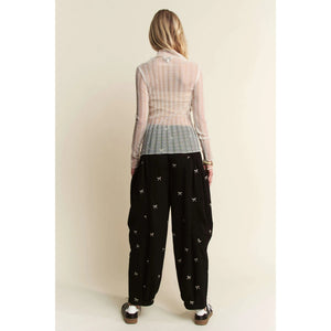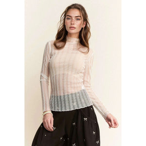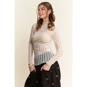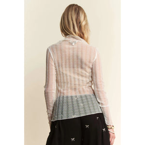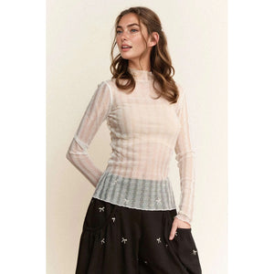 Davi & Dani Turtle Neck Lace Dotted Stretch Mesh Sheer Top