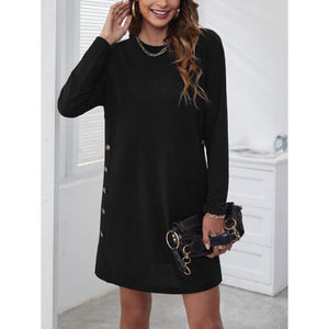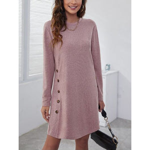 Decorative Button Round Neck Dress