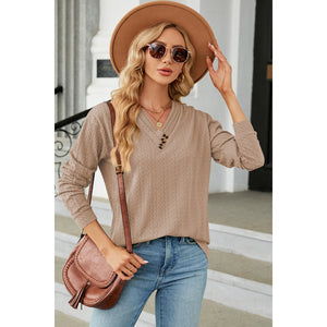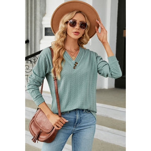 Decorative Button V-Neck Long Sleeve T-Shirt