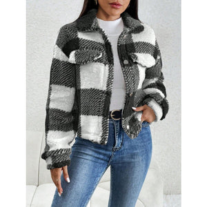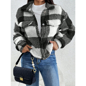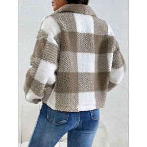 Decorative Pocket Flap Plaid Long Sleeve Jacket