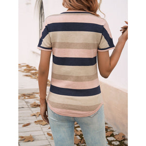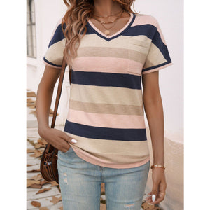 Devine Color Block V-Neck Short Sleeve Knit Top