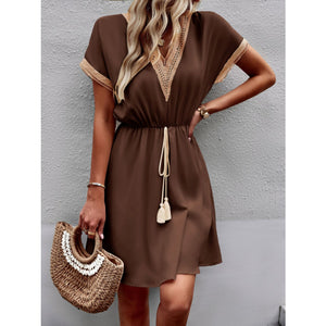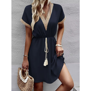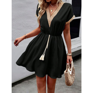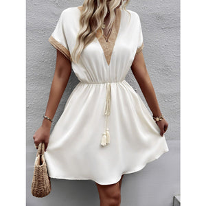 Devine Contrast Trim V-Neck Short Sleeve Mini Dress