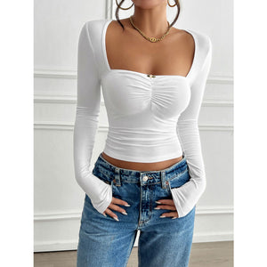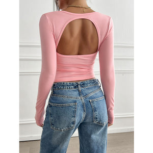 Devine Cutout Square Neck Long Sleeve T-Shirt