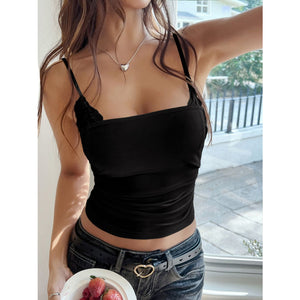 Devine Lace Detail Bow Back Square Neck Fake Two Piece Cami