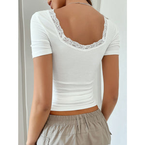 Devine Lace Detail Square Neck Short Sleeve T-Shirt