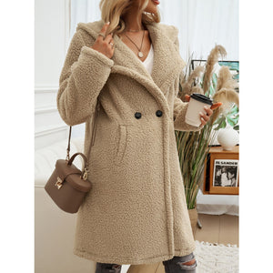 Devine Pocketed Long Sleeve Hooded Teddy Coat