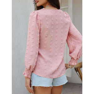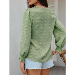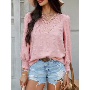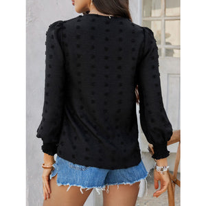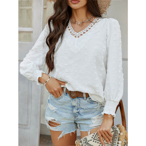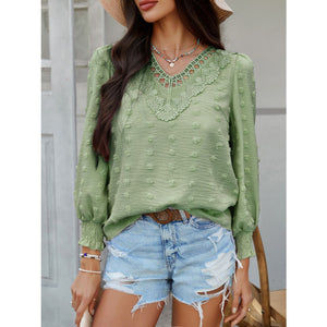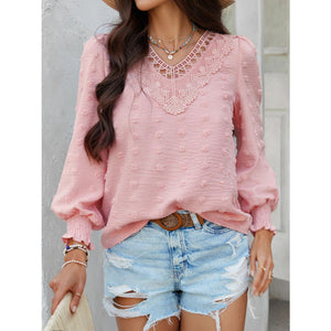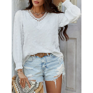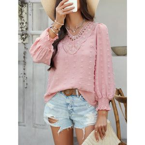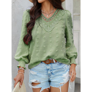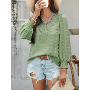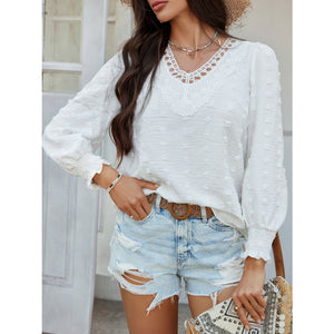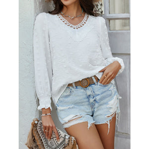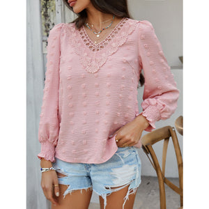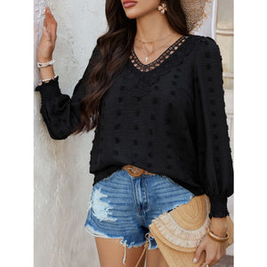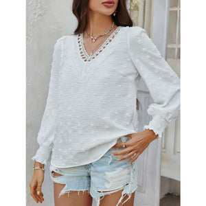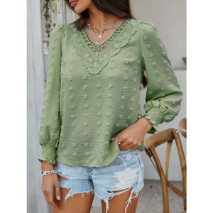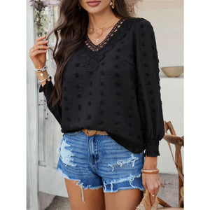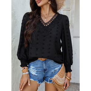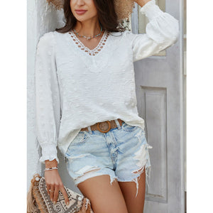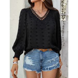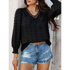 Devine Swiss Dot Lace Detail V-Neck Long Sleeve Blouse