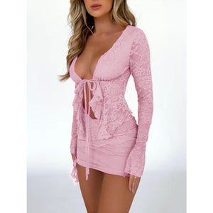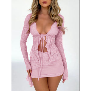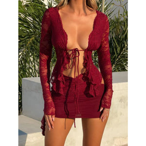 • Features: Lace, Tied, Ruffled