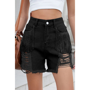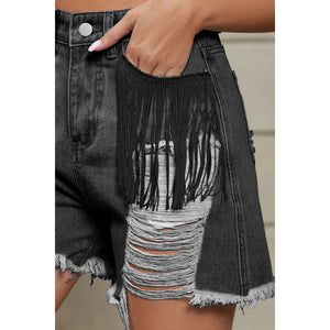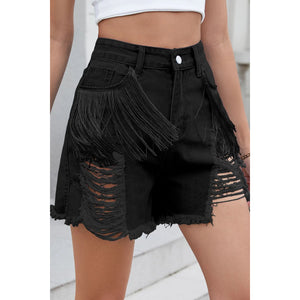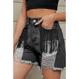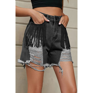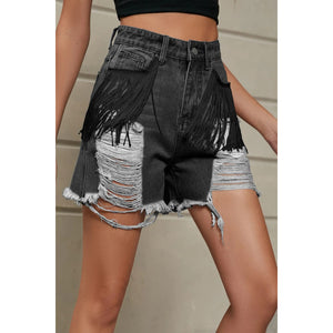 Distressed Fringe Denim Shorts