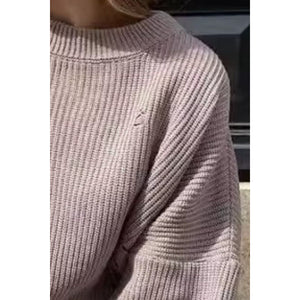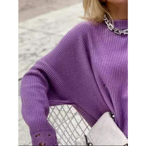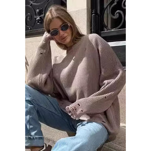 Distressed Round Neck Long Sleeve Sweater