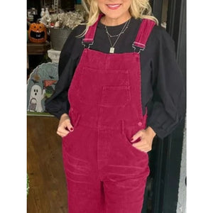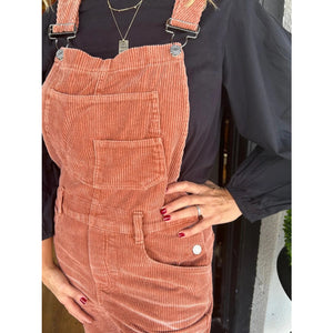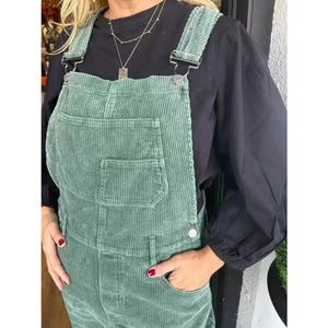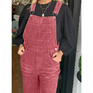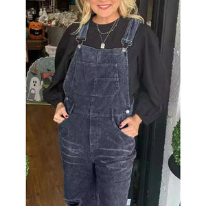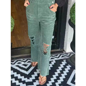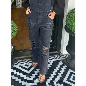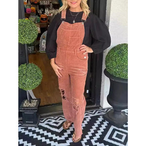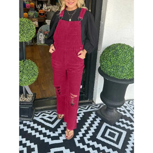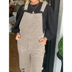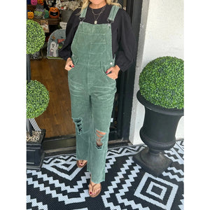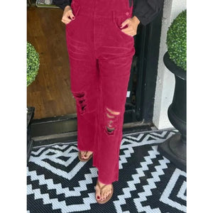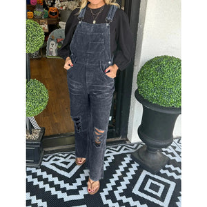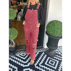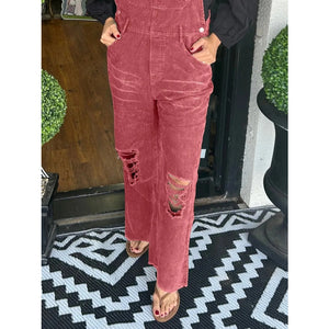 Distressed Wide Leg Corduroy Overalls
