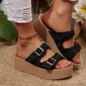 Double Buckle Platform Sandals