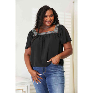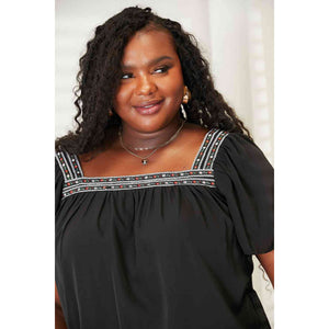 Double Take Contrast Square Neck Puff Sleeve Blouse