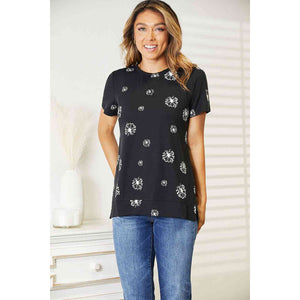 Show off your whimsical side with this Dandelion Print Round Neck T-Shirt. The charming dandelion print adds a touch of nature-inspired beauty to this classic round-neck tee, perfect for adding a playful and artistic flair to your outfit.