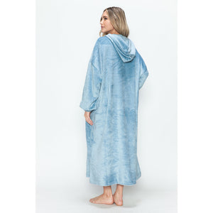 Double Take Full Size Pocketed Hooded Midi Lounge Dress